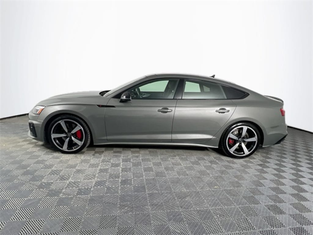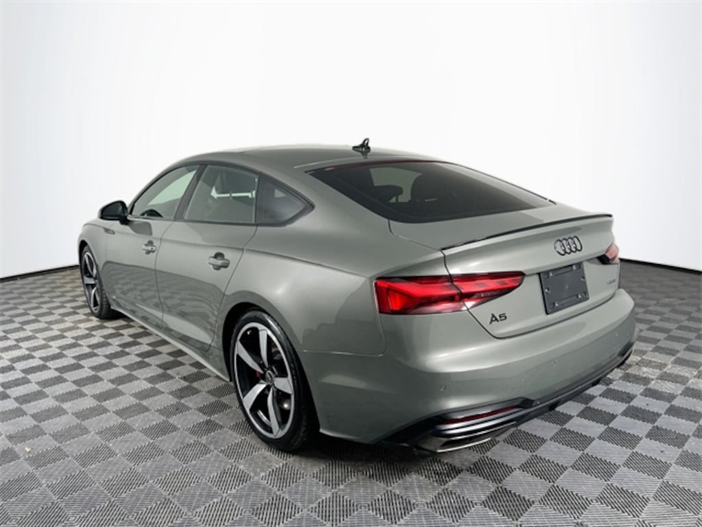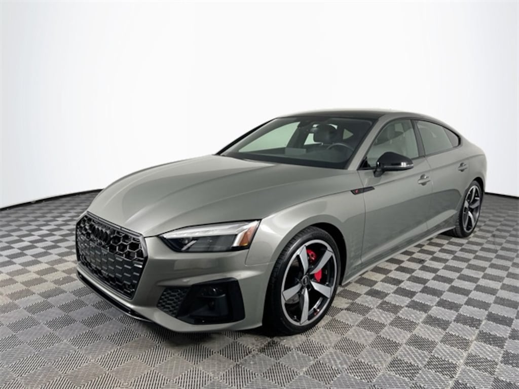 2 Rear USB Charge Ports, Adaptive Cruise Control, Alarm System w/Motion Sensor, Aluminum Ellipse Dark Inlays, Audi Active Lane Assist, Audi Advanced Key, Audi Connect PLUS, Audi Phone Box, Audi Side Assist w/Pre Sense Rear, Audi Virtual Cockpit Plus, Auto-Dimming Exterior Mirrors w/Memory, Bang & Olufsen Sound System w/3D Sound, Black Exterior Mirror Housings, Black Exterior Trim, Black Fender Badges, Black Optic Plus Package, Black Rear Lip Spoiler, Brushed Aluminum Inlays, Convenience Package, Dark Chrome Exhaust Tips, Driver Seat Memory, Hands-On Detection Steering Wheel, Heated Steering Wheel, Leather/Dinamica Seating Surfaces, Leatherette Covered Center Console & Door Armrests, MMI Navigation Plus, Navigation Package, Parking System Plus (Front/Rear Acoustic Sensors), Power Folding Exterior Mirrors, Premium Plus, Red Brake Calipers, S-Line Interior Package, SiriusXM w/360L, Stainless Steel Pedal Caps, Top View Camera System, Traffic Jam Assist, Ventilated Front Seats, Wheels: 19" 5-Arm-Cutter Design Bi-Color Finish. 2023 Audi A5 Sportback 45 S line Premium Plus quattro Chronos Gray Metallic